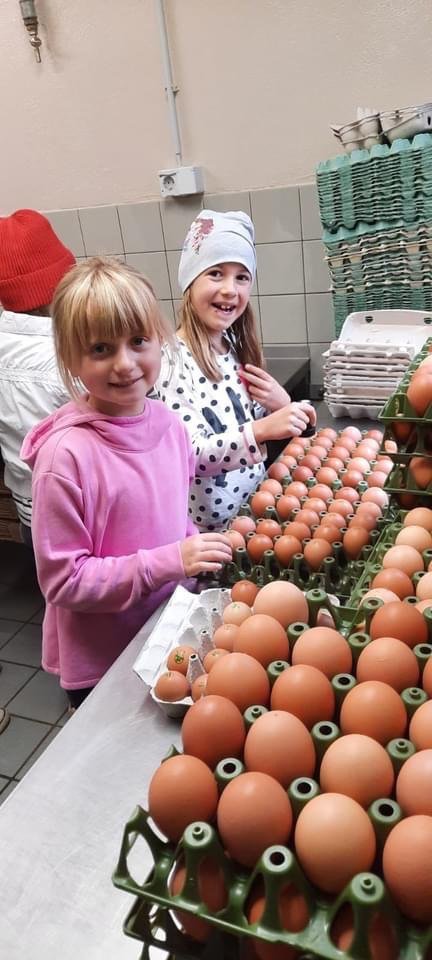 Anlässlich des Welternährungstages durften wir mit der 2.Klasse ereignisreiche Stunden am Biohof Presslauer verbringen. Es drehte sich alles um das Bio-Ei. Gemeinsam haben wir Eier abgenommen, Eierschachteln gepickt, Eier gestempelt und in die Schachteln geklaubt. Anschließend gab es noch eine Eierspeis mit Schnittlauch und frischem Brot.
