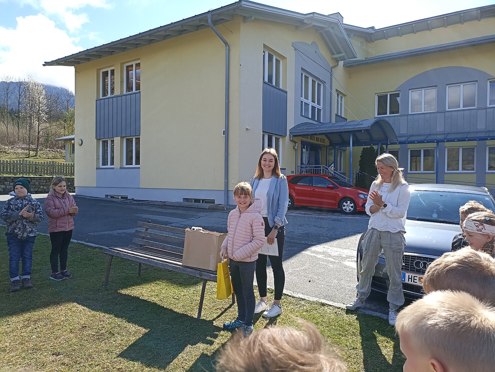 Die Kinder unserer Schule nahmen am diesjährigen, landesweiten Malwettbewerb der Raiffeisenbank teil. Das Thema lautete: „Was ist schön?″. Jedes Kind zeigte viel Eifer und Kreativität und so fiel es der Jury nicht leicht, die Sieger zu bestimmen. Je Altersgruppe 1 und 2 wurden die ersten drei Plätze heute bei herrlich sonnigem Aprilwetter geehrt. Wir gratulieren Mila Berger, Matilda Thalmann, Emilia Buchacher, Eleanor Zerza, Leo Presslauer und Sophia Simoner. Wir bedanken uns bei Julia Jank, Raiffeisenbank Kötschach-Mauthen, für die nette Übergabe der Preise.